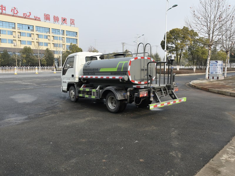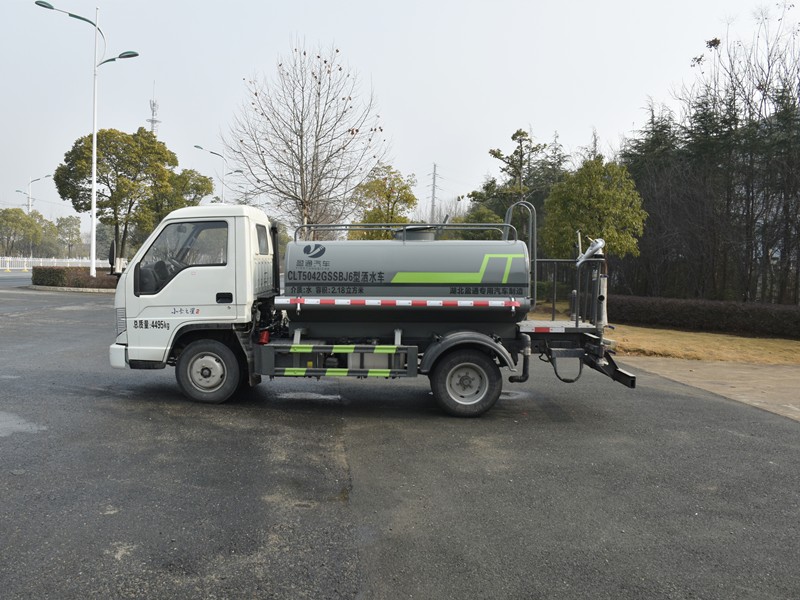 專用功能配置:罐體實(shí)際容積約為2.7立方米,公告有效參數(shù)2.18立方米、采用武鋼優(yōu)質(zhì)碳鋼板卷壓成型。配備專用灑水泵,自吸自排,前噴后灑、后對(duì)沖、側(cè)噴、后工作平臺(tái)及灑水高壓炮。灑水泵自吸高度為6米左右,整車灑水寬度14米左右,后工作平臺(tái)水炮可調(diào)成:直沖狀、大雨、中雨、小雨、霧狀、有效射程≥28米,整車帶接頭、水位計(jì),自流閥及自吸功能。后平臺(tái)主管道有一個(gè)一寸的澆花接口,附送2根3米水管,1個(gè)爬梯,兩側(cè)及后保險(xiǎn)杠。
