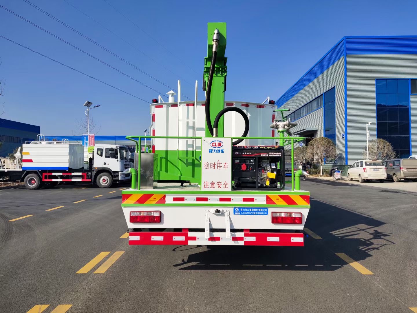 整車采用全智能電控操作(駕駛室觸屏、無線遙控、手動三種方式操作),車輛噴淋系統(tǒng)、攪拌功能、旋轉(zhuǎn)臂功能。單本流量計等,除了底盤及水罐自吸自排以外的功能,可選全部采用車載副發(fā)電機組組提供動力,配電箱預(yù)留外接電源接頭套,可采用市電轉(zhuǎn)換。噴淋系統(tǒng)加裝單車流量計(用于計量每節(jié)火車皮的抑塵劑噴灑量),噴淋系統(tǒng)可加裝鉤檔停噴系統(tǒng)(接觸式感應(yīng)噴淋,兩節(jié)火車皮之間停噴)。可選帶有車號識別與記錄功能。整車噴淋系統(tǒng)、單車流量計與車號識別記錄功能,視頻監(jiān)控等全部連接到和反應(yīng)到智能電腦屏幕上面。