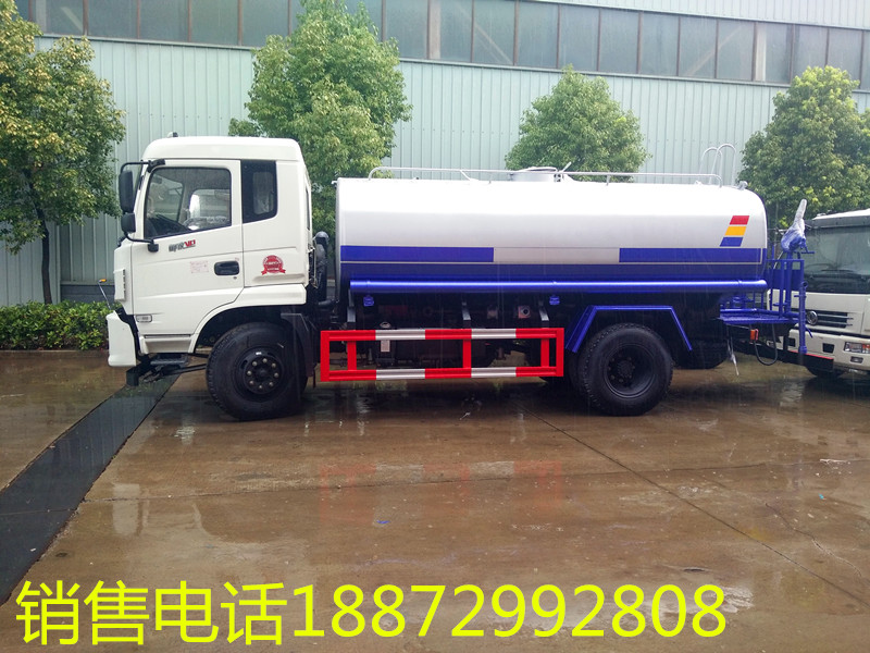 隨底盤選裝駕駛室;側噴為選裝件;品名:水;密度:1000千克/立方米;有效容積:9.34立方米;軸距3950mm時,罐體外形尺寸(長×長軸×短軸)(mm):4600×2180×1390,外形尺寸長(mm)/前懸(mm)對應關系:7700/1250,7900/1450;軸距4500mm時,罐體外形尺寸(長×長軸×短軸)(mm):5200×2080×1290;外形尺寸長(mm)/前懸(mm)對應關系8250/1250,8450/1450;ABS型號為3631010-C2000,生產廠家為東科克諾爾商用車制動系統(十堰)有限公司;側面防護裝置材料材質:Q235,連接方式:焊接;后下部防護裝置材料材質:Q235,連接方式:焊接,斷面尺寸(寬×高):30×120(mm),離地高度:500mm. 吸程7米,灑水寬度14-16米,射程25-30米,引水時間<5min,流量60m3/h。前沖()、后灑、帶側噴(花灑)、帶后工作平臺、平臺上安裝綠化灑水高炮(炮噴射形狀可調節:直沖、大雨、中雨、毛毛雨、霧狀、可連續調節,360°旋轉),配消防接口,自流閥,濾網,帶自吸自排功能。配備大功率專用灑水泵,泵可自吸自排,安裝過濾網,帶消防接口,可通過消防栓進水,帶自流閥,隨車選裝20米綠化卷盤,可噴灑農藥,罐體金屬漆。罐體有橢圓和方圓罐兩種,可根據用戶的要求定做