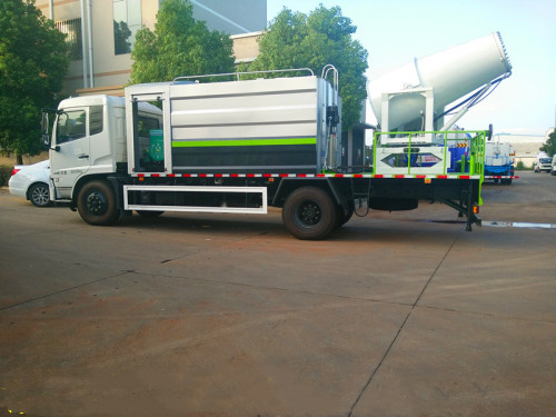 多功能抑塵車最遠噴水距離為20到120余米,單車最大蓄水量近20噸,主要作用是噴霧抑塵,同時具備灑水和道路沖洗功能,有效抑制揚塵的產(chǎn)生。在城市遭遇霧霾天氣、空氣質(zhì)量PM2.5嚴重超標時,可隨意選定一個區(qū)域進行液霧降塵、分解淡化空氣中的顆粒濃度、將飄浮在空氣中的污染顆粒物、塵埃等迅速逼降地面,達到治理凈化空氣的明顯良好效果