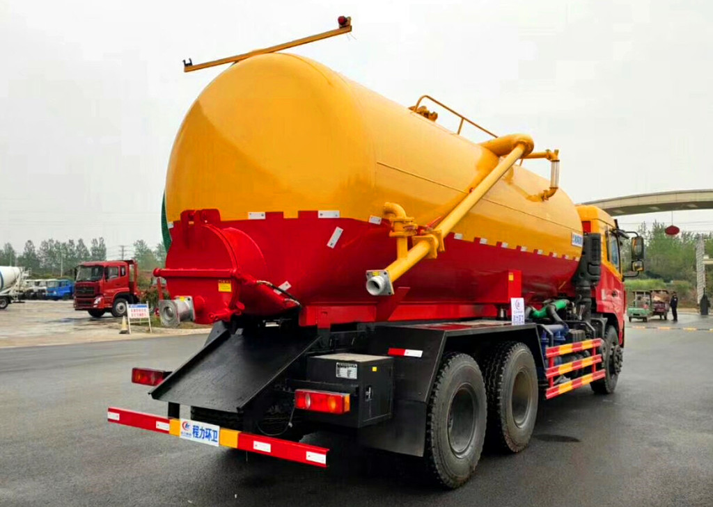 清洗裝置:配天津通潔300升高壓泵, 60米PVC雙層高壓管22通徑高壓管,10個高壓噴頭,兩個水泥蓋,頂部100的互通,水污互通用100的球閥,水罐3寸球閥安在罐體最底部.水倉污倉罐體內噴防銹,后封頭600的液壓口,一個6寸自流,一個4寸的進料口,一個4寸的排污口,側面一個6寸的球閥偷排。后蓋加裝活動可拆式卷盤壹套,右后側一套卷盤,罐體采用8個厚鋼板制作,后蓋上帶一個600液壓口排污,300側邊自流口。