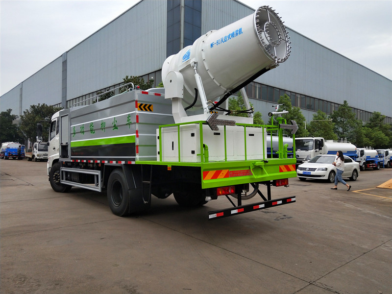 罐體采用機器壓板一次性成型技術,采用先進旋邊機,罐體包罐機工藝保證了罐體制作的精度和美觀。全國獨有烤漆工藝,防腐除銹,多層底漆、面漆噴涂。功能齊全,灌溉、噴灑、道路養護,噴霧降塵、高炮噴射等,采用優質水泵,合理設計水路管道,氣控取力器,作業能力強;加大罐體設計,可以裝作14-18方水,內設6道防蕩板,提高了車輛的使用效率。 霧炮*大噴灑距離可達100-120米。