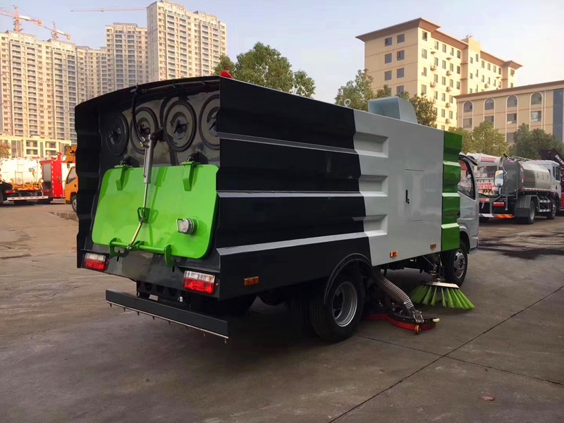 1、掃路車的垃圾箱最大容積可達到2立方,可持續作業4小時以上。清水箱容積1立方,在進行清掃工作的時候可有效抑制二次揚塵。