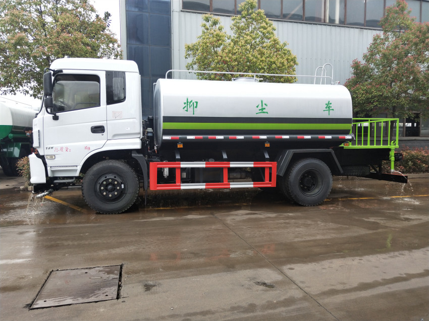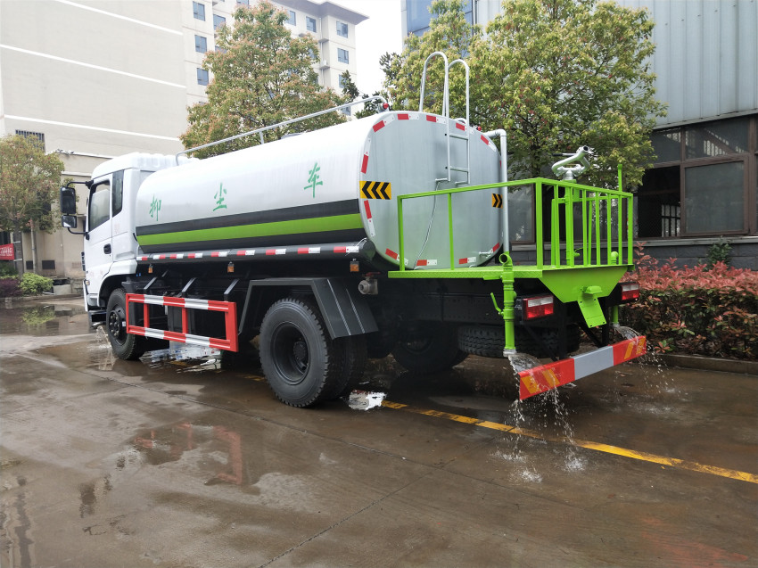 東風(fēng)天錦12-15噸灑水車改裝配置:罐體采用武鋼優(yōu)質(zhì)碳鋼板,采用國標(biāo)5mm厚制作,罐體內(nèi)設(shè)有隔浪板,具有防波浪作用,以減低汽車行駛時(shí),對(duì)罐體的沖擊,射程可達(dá)35米,垂直吸程≥7米,灑水寬度≥14-16米,帶自吸自排功能,消防栓接口,前沖,后灑,側(cè)噴,后工作平臺(tái)帶綠化水炮,綠化灑水炮(噴射形狀可調(diào)),可調(diào)直沖狀、大雨、中雨、毛毛雨,可連續(xù)調(diào)節(jié),自流閥,三通濾網(wǎng),2根3米輸水管,金屬漆,其它灑水車標(biāo)配。