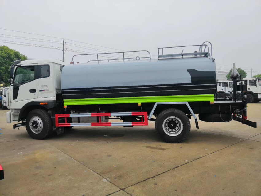 福田瑞沃12噸灑水車罐體采用機器壓板一次性成型技術,優質武鋼材質,配置大容量水箱,水罐采用有限元分析優化設計,儲水量更大,延長作業時間;配置獨立的高、低兩套水路系統,高低壓水泵選用國際知名品牌;采用自吸式級雙級離心泵,效率高,水源不方便時,可從河道、湖泊中吸水。全國獨有烤漆工藝,防腐除銹,多層底漆、面漆噴涂。 功能齊全,灌溉、噴灑、道路養護,噴霧降塵、高炮噴射等,采用優質水泵,合理設計水路管道,氣控取力器,作業能力強;加大罐體設計,可以裝作12方水,提高了車輛的使用效率。