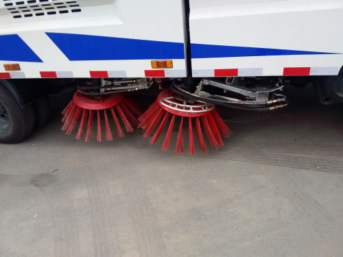 3、采用“中置四盤刷+后置吸嘴”或“中置兩盤刷+中置寬吸嘴”的結構布置,便于清掃裝置與吸嘴的調整和維護,轉場時整車通過性好。