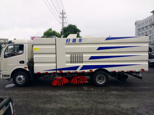 東風大多利卡掃路車(2.5水/5塵)掃路車清掃方式:四掃盤與吸盤進行吸掃結合,吸掃能力卓越;兩側掃把可同時工作,也可單側獨立工作。清掃裝置機構簡潔可靠,帶避讓防撞功能。