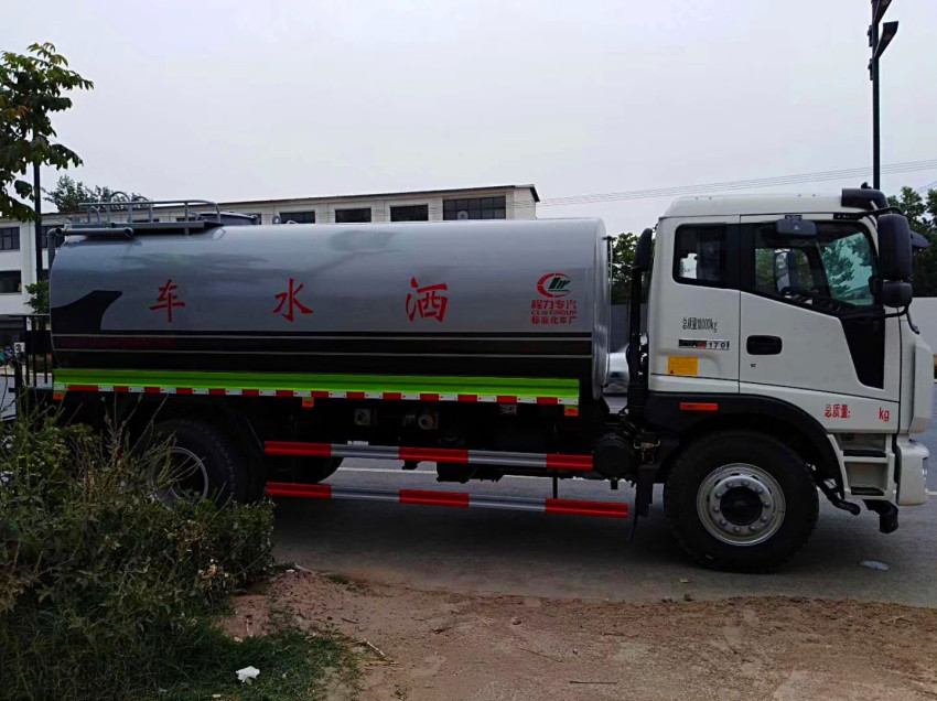 福田瑞沃12噸灑水車罐體采用機器壓板一次性成型技術,優質武鋼材質,配置大容量水箱,水罐采用有限元分析優化設計,儲水量更大,延長作業時間;配置獨立的高、低兩套水路系統,高低壓水泵選用國際知名品牌;采用自吸式級雙級離心泵,效率高,水源不方便時,可從河道、湖泊中吸水。全國獨有烤漆工藝,防腐除銹,多層底漆、面漆噴涂。 功能齊全,灌溉、噴灑、道路養護,噴霧降塵、高炮噴射等,采用優質水泵,合理設計水路管道,氣控取力器,作業能力強;加大罐體設計,可以裝作12方水,提高了車輛的使用效率。