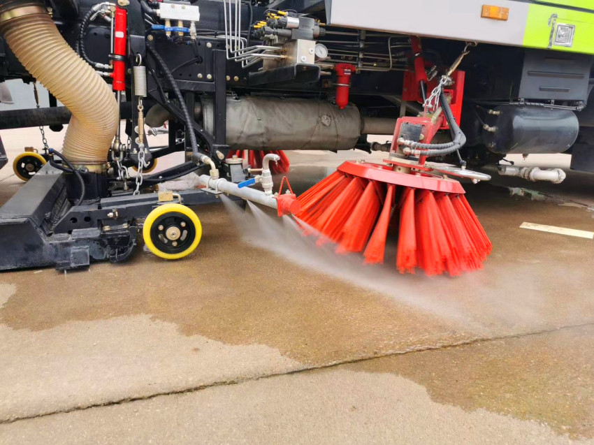 二、采用“中置兩立掃+中置寬吸嘴(內置高壓水噴桿)+左右高壓側噴桿”的結構。