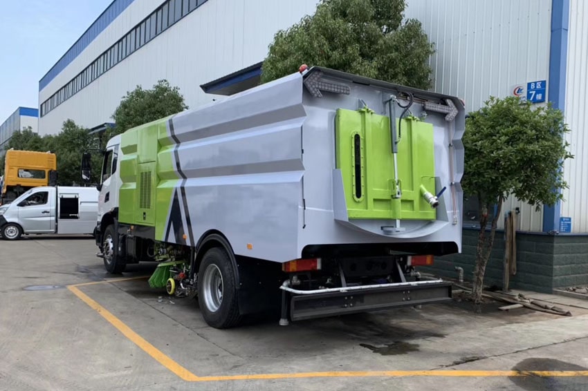 東風天錦洗掃車具有路面清洗、路面清掃路緣和路緣石立面洗刷、低壓沖洗、噴霧 除塵等多功能。有“全洗掃”、 “左洗掃”、 “右洗掃”、 “全掃”、 多種作 業模式可選擇。選擇“全洗掃”模式清洗廣場和路面,清洗效率高效果好,洗 凈率達 95%以上。選擇“左洗掃”或“右洗掃”模式清洗路面和路緣 。需要進 行路面清掃或路面保潔作業時,可選擇掃路模式。需要噴霧除塵時,可開啟噴霧裝置,進行噴霧除塵作業。可以像灑水車一樣對路面進行低壓沖洗作業。