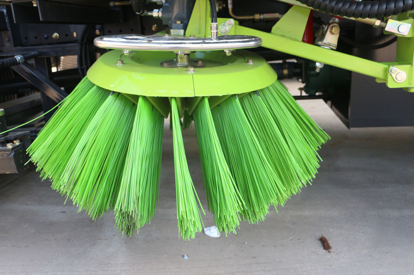 二、采用“中置兩立掃+中置寬吸嘴(內置高壓水噴桿)+左右高壓側噴桿”的結構。
