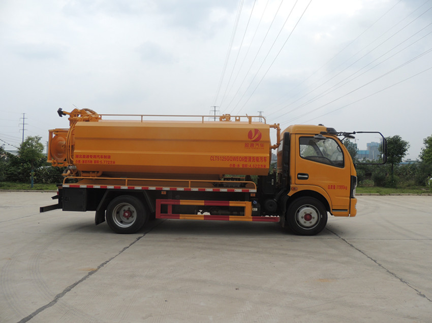 東風清洗吸污車吸污部分:吸污罐采用6mm武鋼碳鋼制作,容積約7方,帶視污窗,洗手裝置,安裝有防溢閥,SK-12水環(huán)式真空泵(選裝油泵),帶8米4寸吸污鋼絲橡膠管,罐尾配100mm排污球閥,罐體帶液壓舉升系統(tǒng),后蓋液壓打開、關閉,帶自卸功能,可進行加壓強排。罐體內(nèi)帶隔襯板,防止吸污罐體變形。