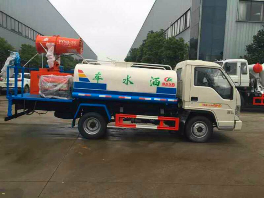 功能及說明:灑水車前裝有鴨嘴形噴嘴或圓錐形沖嘴,后面裝有圓柱形灑水噴嘴或蓮蓬頭噴嘴,后部有工作平臺(tái),裝配有水炮。后部還可裝8個(gè)噴嘴。