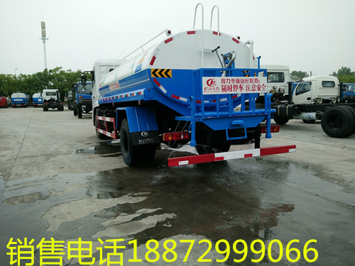 東風12噸灑水車標配前沖、后灑、側噴、高位花灑、后工作平臺、360度可調節綠化水炮,自流閥、濾網、消防接口(可連接消防栓取水,可作應急消防用),罐前量管(觀察罐內水位)、罐后爬梯、罐上簡易罐口、帶簡易護欄、罐側雙炮筒、炮筒內3米長鋼絲塑膠抽水管兩根,罐體表面雙層油漆工藝,防銹、耐腐蝕,其余由廠家標配。