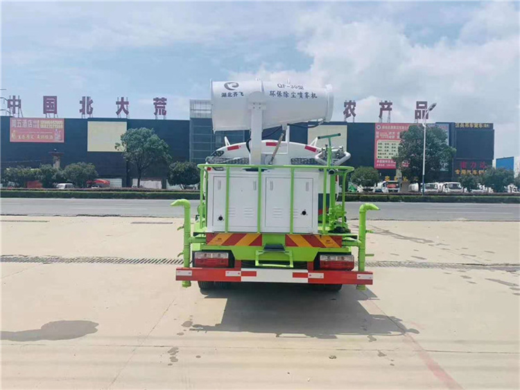 改裝配置:罐體用4MM碳鋼板制作,罐內隔板具有防波作用,以減低汽車行駛時罐體液體的沖擊。整車帶一個專用灑水泵(垂直大吸程6米),灑水寬度14米,射程28米。多功能灑水車配備2個前沖(噴)(能將路面泥巴、塵土、垃圾沖干凈);2個后灑(能均勻地將水灑在路面,一次灑水寬度14米)、2個側噴(花灑)(能均勻地將路旁綠化帶澆灌)、帶1個后工作平臺,平臺上安裝1個綠化灑水高炮(灑水炮可全方位旋轉,可連續調成直沖狀、大雨、小雨、毛毛雨,霧狀可調節沖洗高大樹木),引水時間<5min,流量90m3/h。帶1個消防接頭,帶1個自流閥,1個過濾裝置、人性化爬梯及側防護欄,安裝灑水音樂喇叭。