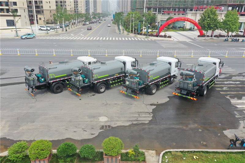 4、后噴灑;裝有兩只可噴淋后灑裝置,主要對路面進行保潔和壓塵,呈扇形噴灑時,灑水寬度可達10m以上