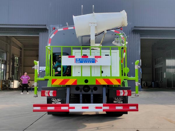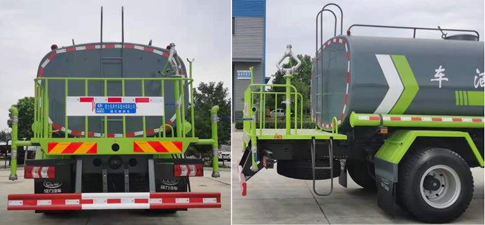 配備大功率專用灑水泵,泵可自吸自排,安裝過濾網,帶消防接口,可通過消防栓進水,帶自流閥,隨車選裝20米綠化卷盤,可噴灑農藥,罐體金屬漆。罐體有橢圓和方圓罐兩種,可根據用戶的要求定做