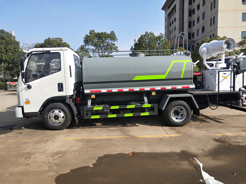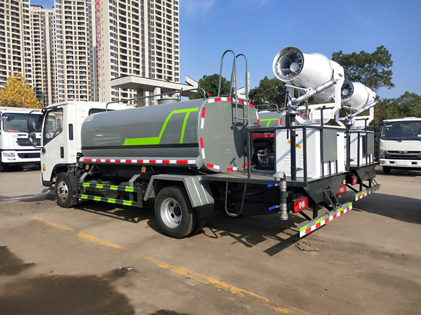 性能簡介:吸程≧7米,灑水寬度≧14-16米,射程≧25-40米,引水時間<5min,流量60m3/h。前沖(噴)、后灑、帶側噴(花灑)、帶后工作平臺、平臺上安裝綠化灑水高炮(炮噴射形狀可調節:直沖、大雨、中雨、毛毛雨、霧狀、可連續調節,360°旋轉),配消防接口,自流閥,濾網,帶自吸自排功能。安裝30-80米霧炮,霧炮可以遙控操作,可以手動操作,按霧炮大小配多大功率發電機