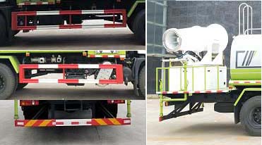 霧炮車罐體為橢圓形或方形,采用武鋼優質碳鋼板制成,罐體倉內1.5米一道隔板,具有防波防蕩作用,還可按用戶要求進行專業的防腐防銹處理,罐體外可用發泡或巖棉加裝保溫層起保溫功能。可選裝藥盤,藥泵、高壓噴藥設備、非車帶泵動力等.、罐內防腐防銹、多方位進出水接頭、氣動閥、警燈等先進設施,以滿足不同用戶需求。