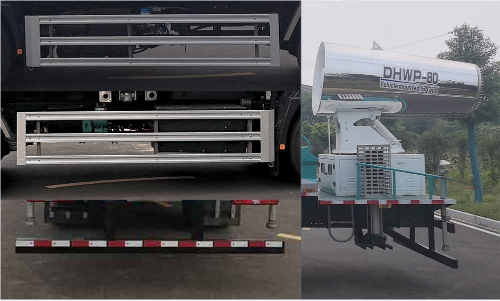 離地面高度360mm;專用功能及裝置:水泵,遠程射霧器,儲液箱,灑水系統,主要用途為抑塵、降霾、除塵等;