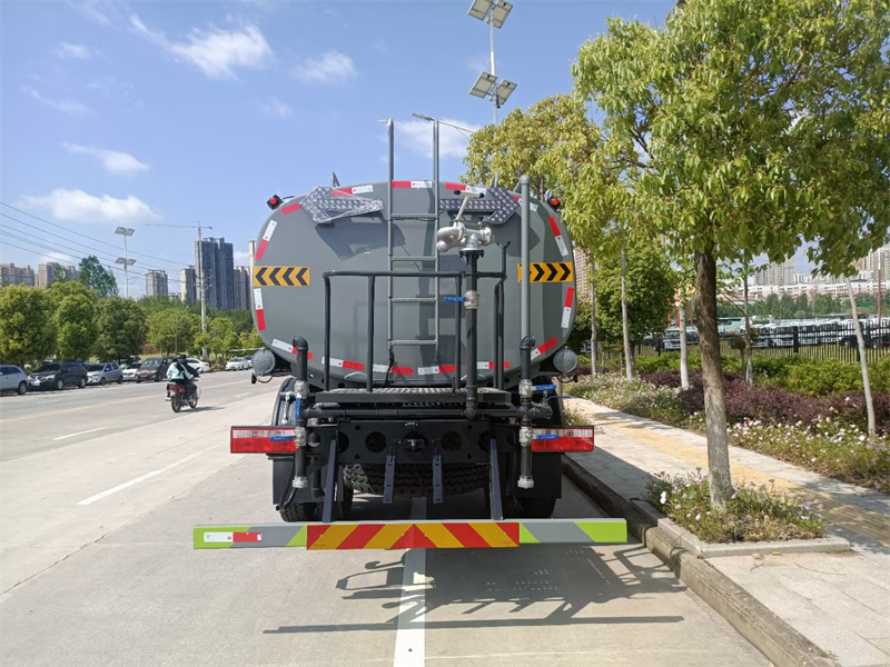 東風15方灑水車產品主要技術參數 序號 名稱 型號、規格 1 整車型號 CLT5183GPSEQ6A 型綠化噴灑車 2 發動機型號 D4.0NS6B195 3 發動機馬力/功率 康明斯 195 馬力/143KW 4 發動機排量 4000ML 5 變速箱 法士特 8 檔(帶高低檔) 6 輪胎規格 10.00 鋼絲胎 7 軸距 4500 8 總質量 18000KG 9 整備質量 7300KG 10 額定載質量 10505KG 11 整車尺寸(長×寬×高) 8.45*2.5*3.2 12 罐體容積 16 方 13 燃料種類 柴油 14 排放標準 國六 15 水泵型號 60/90 16 罐體材質 Q235 碳鋼產品功能展示 前沖鴨嘴 后灑 后對沖 高炮 高位花灑 側噴