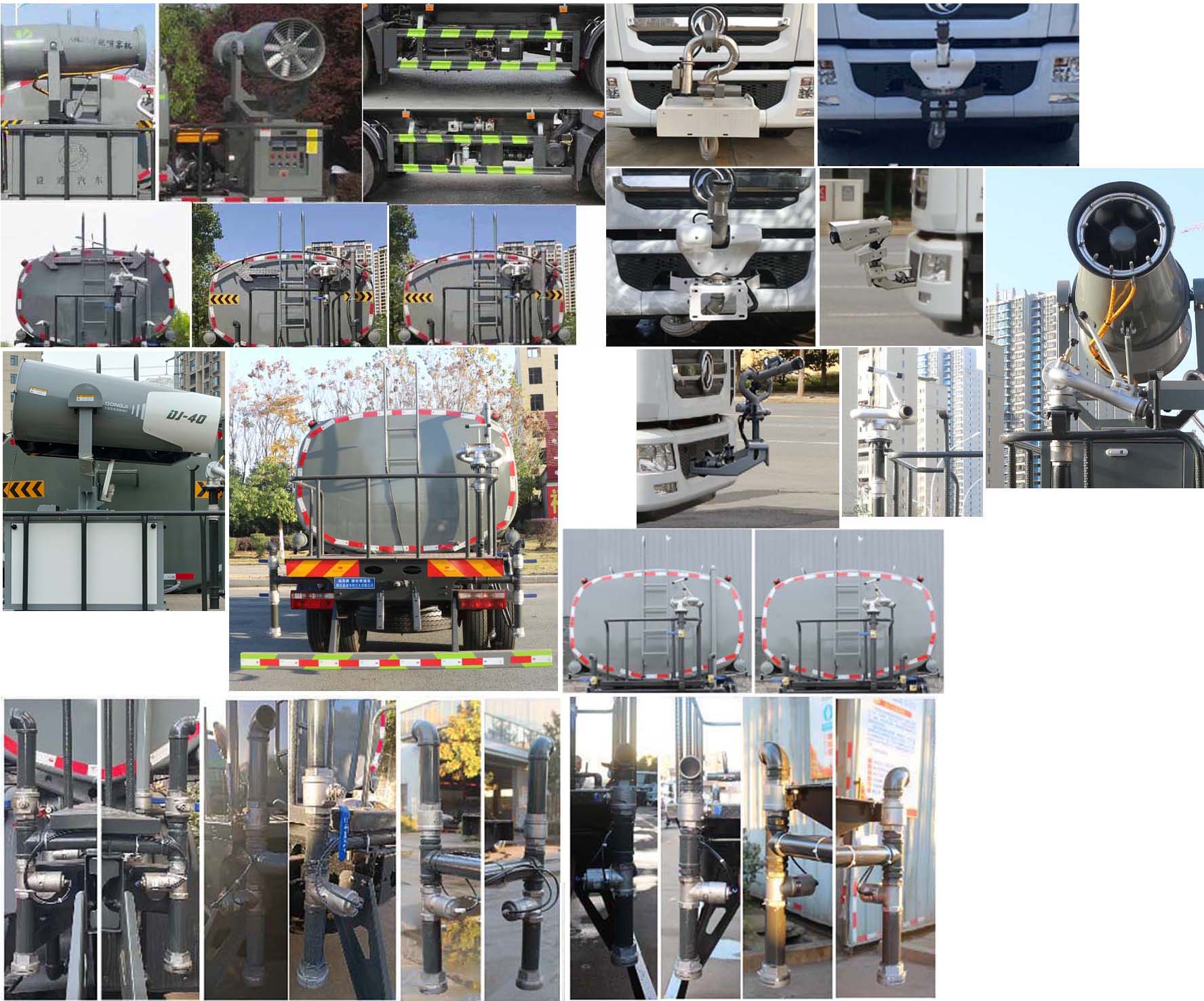 該車主要用于城鄉園林綠化噴灑,噴藥;主要裝置為水罐及噴灑裝置;隨底盤選裝駕駛室;罐體總容量:9.7立方米;罐體有效容積:9.24立方米;罐體外形尺寸(長×長軸×短軸)(mm):4200×2300×1450,4000×2300×1540;ABS型號:ABS系統生產廠家,型號:焦作博瑞克控制技術有限公司,J ABS;襄陽東風隆誠機械有限責任公司,ABS/ASR-24V-4S/4M.側、后防護材料均為:Q235碳鋼,連接方式均為:螺栓連接,后部防護截面尺寸(mm):120×50,后部防護離地高度(mm):460.選裝底盤選裝燃油箱,電瓶,尿素罐,儲氣筒左右安裝位置.選裝噴霧裝置樣式,選裝后部箭頭燈,選裝后部弧形噴灑裝置,選裝水炮支架位置,選裝自動炮裝樣式,選裝自動炮裝置,前伸500mm,整車長度為8000,8250(mm).選裝自動球閥安裝位置,選裝箭頭燈裝置,選裝工具箱樣式及位置,選裝頂部高位花灑裝置,選裝罐體頂部方形罐口樣式,后部作業燈僅在作業時開啟,車輛行駛過程中不可開啟.