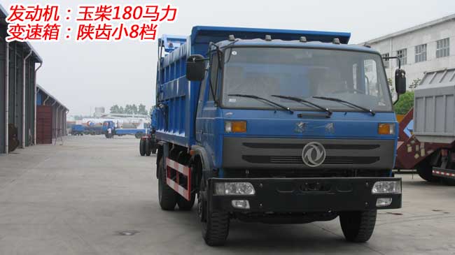 東風老款153駕駛室,排半前翻,康明斯190/玉柴180馬力發動機,軸距4.7/5.1米,小8檔變速箱,東風德納前橋5噸,后橋10噸,車架250(7+4),10.00R20風神胎,帶原廠ABS,方向助力,斷氣剎。
