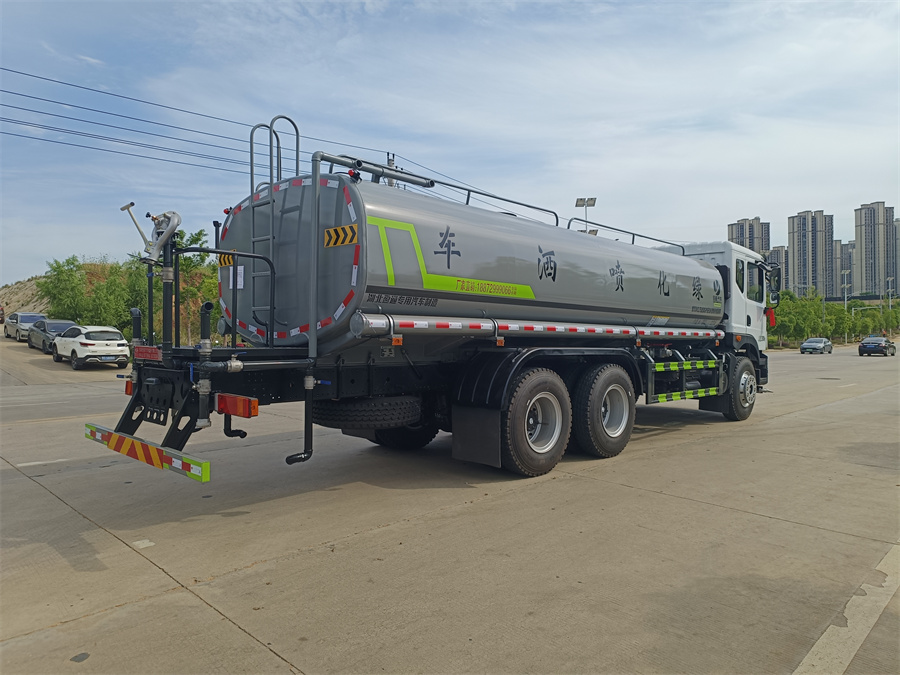 東風20噸灑水車產品標配前噴(鴨嘴)、后沖、后灑、側噴、后置式工作 平臺,平臺上配置綠化水炮(可 360°旋轉,既可以調成柱狀,也可 以調成霧狀,更可以調成直沖狀、大雨、中雨、小雨、毛毛雨),配 備優(yōu)質大功率專用灑水泵(可自吸自排,可從河里或池塘抽水到罐體), 取力器,雜物過濾網,消防接口,自流球閥系統(tǒng)、取力器、球閥、濾網 均為國家標準產品,主管道加粗,法蘭墊、法蘭盤加厚,大通徑球閥。 整體具備性能優(yōu)良安全可靠、效率高、流量大、維修方便等特點IMG20240603160859_副本.jpg