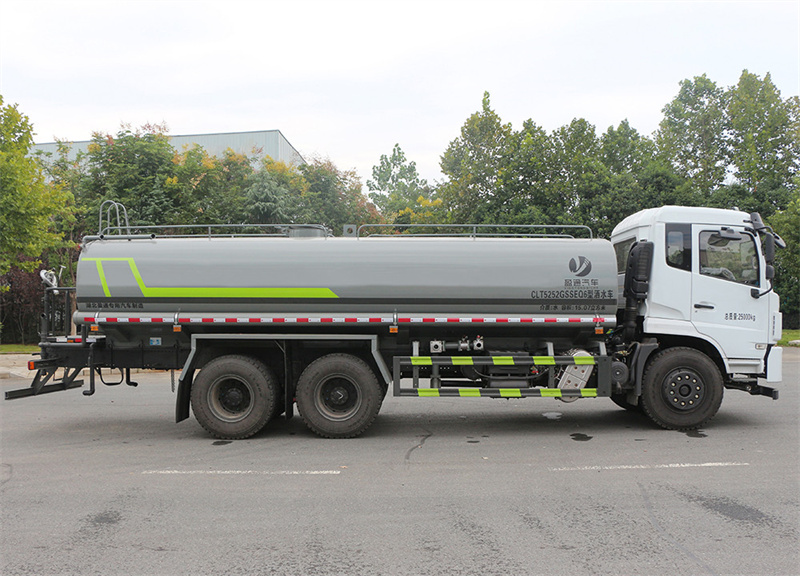 產品主要技術參數 序號 名稱 型號、規格 1 整車型號 CLT5252GSSEQ6 型灑水車 2 發動機型號 YCS06245-60 3 發動機馬力/功率 玉柴 245 馬力/180KW 4 發動機排量 6234ML 5 變速箱 法士特 8 檔變速箱 6 輪胎規格 11.00 鋼絲胎 7 軸距 4350+1350 8 總質量 25000KG 9 整備質量 10450KG 10 額定載質量 14355KG 11 整車尺寸(長×寬×高) 10.25*2.55*3.2 12 罐體容積 18.8 方 13 燃料種類 柴油 14 排放標準 國六 15 水泵型號 60/90 16 罐體材質 Q235 碳鋼