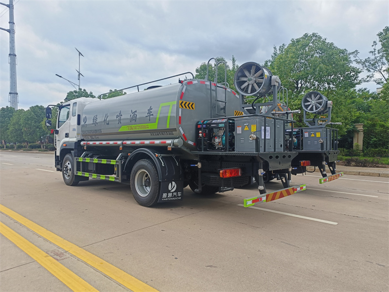 罐體約為 15 方、邊燈帶電,罐體尾部上方標配 2 個紅色示寬燈 、前噴為鴨嘴直沖,標配后對沖,用戶可根據(jù)自己的需求,來調(diào)整對沖位置 、沖孔平臺(承載能力加強),炮筒后蓋為定制型螺栓卡扣 、前噴、后對沖、后灑球閥均采用 50 大通徑不銹鋼球閥 、新式軸承式水炮,更加耐用。配 60-90 型水泵 、側(cè)噴和高炮管道加粗并配 65 大通徑不銹鋼球閥,壓力更大 、防腐法蘭墊片 、鋁制后灑,不易炸開 、罐體自動焊(美國林肯焊機及電源),拼板自動焊接封頭環(huán)縫焊接,無氣 孔焊縫美觀 、爬梯、側(cè)護網(wǎng)、后保險杠均為螺栓連接方便拆卸維修 、塑料擋泥板替代鐵擋泥板更加輕便,用螺栓連接方便拆卸 、前部、后部主管連接處為 6 孔圓法蘭連接不易沖墊