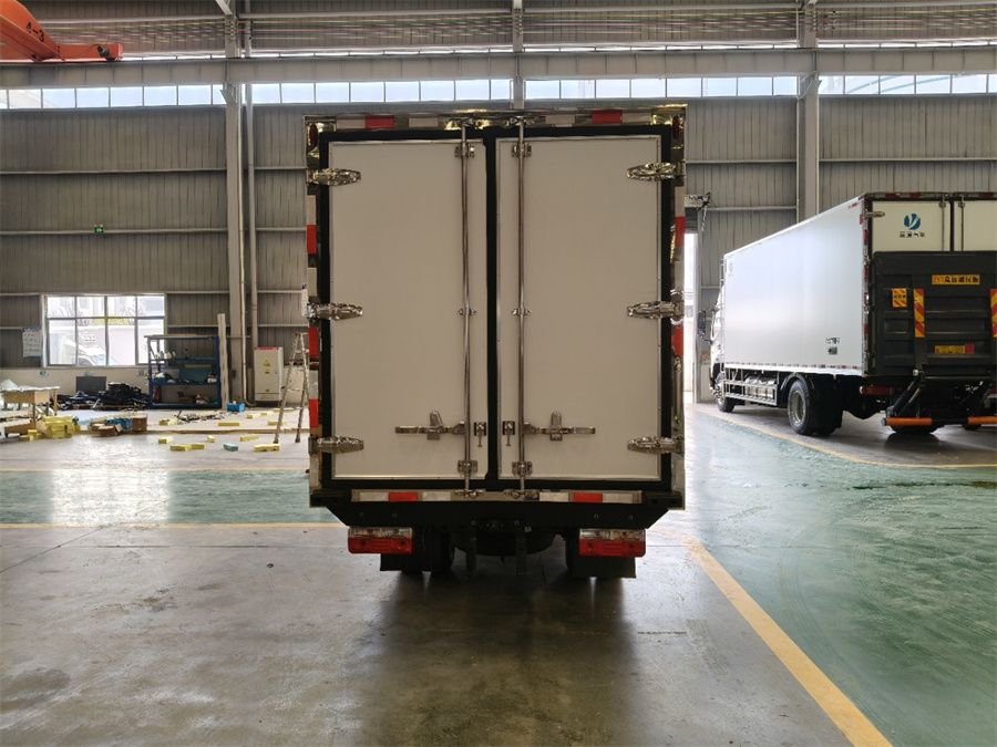 廂體工藝: 廂體材質(zhì)采用內(nèi)外玻璃鋼,中間XPS保溫板,后雙開門,廂體右側(cè)靠前選裝開側(cè)門,底部采用花紋防滑鋁板,前部排水孔,門邊條采用迷宮式橡膠密封條,鋁合金型材包邊,不銹鋼包角,不銹鋼門鎖,不銹鋼門框及合頁,廂體內(nèi)節(jié)能LED照明燈。
