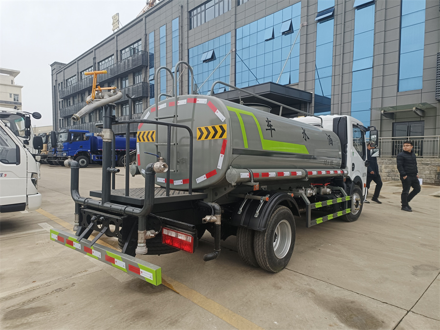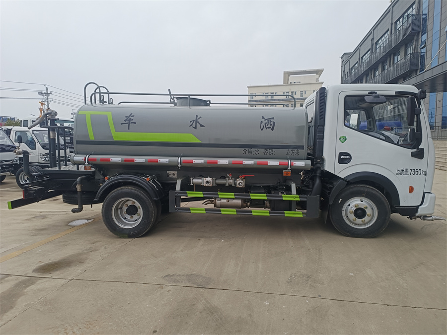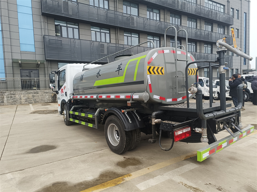 灑水車標配前噴 (鴨嘴) 、后沖、后灑、側噴、后置式工作 平臺,平臺上配置綠化水炮 (可 360°旋轉,既可以調成柱狀,也可 以調成霧狀,更可以調成直沖狀、大雨、中雨、小雨、毛毛雨) ,配 備優質大功率專用灑水泵(可自吸自排,可從河里或池塘抽水到罐體), 取力器,雜物過濾網,消防接口, 自流球閥系統、取力器、球閥、濾網 均為國家標準產品,主管道加粗,法蘭墊、法蘭盤加厚,大通徑球閥。 整體具備性能優良安全可靠、效率高、流量大、維修方便等特點