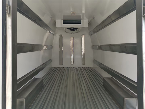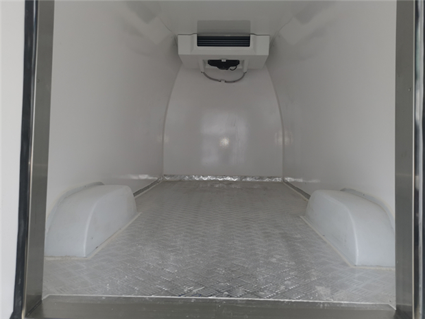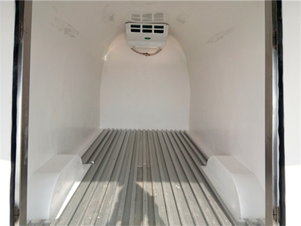 福田G7冷藏車(chē)車(chē)廂配置為:廂體采用內(nèi)外優(yōu)質(zhì)玻璃鋼板,內(nèi)膽圓弧式廂體,地板為鋁花紋板,底板和四周廂板加裝通風(fēng)槽,不銹鋼門(mén)框,鎖件。