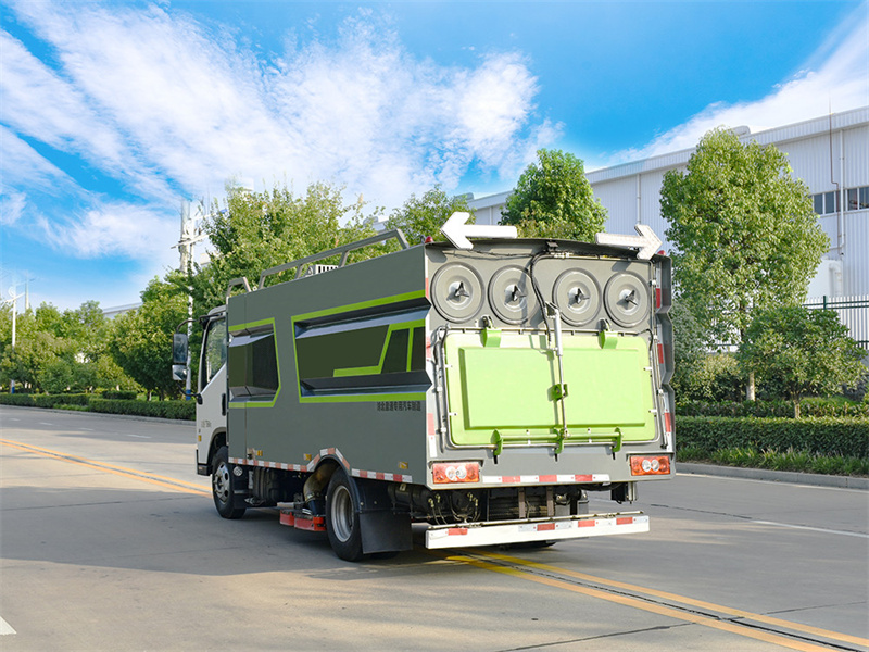 9.集塵箱自主研發三級降塵技術,采用重力除塵,慣性除塵,濾網除 塵,并結合脈沖除塵技術,既能將灰塵吸凈,又能防止濾網堵塞。10. 車輛后部集塵箱安裝手動吸口,可連接吸塵管直接手動操作。