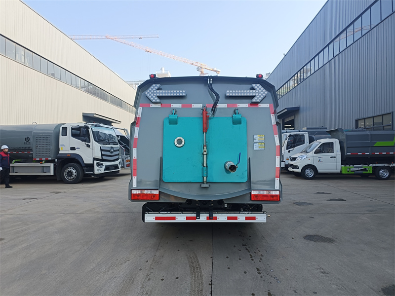 箱體材質為Q235碳鋼,箱體做電泳處理。水箱容積3方,塵箱容積3方。帶2個中置掃 盤,玉柴102馬力副發動機;三洋馬達;高壓水泵(前沖/側噴/中噴/沖洗水槍/垃圾箱 自潔裝置);控制器;控制箱;PLC一鍵控制;尾部LED箭頭燈;垃圾箱、水箱均帶防 溢低水位報警裝置;倒車及洗掃狀態室內監視器。20m高壓沖洗卷盤。車前加裝雪滾,