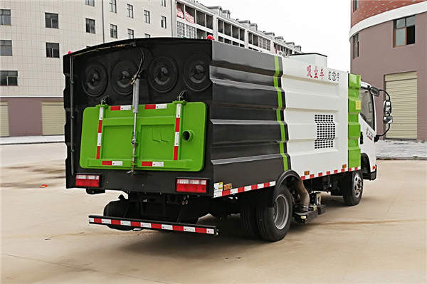 上裝配置:該車型在二類底盤上進行改裝,加裝副發動機、風機、清水箱、垃圾箱、掃刷、后置吸盤,掃盤降塵系統,液壓系統、專用裝置電控系統和副車架等改裝而成。