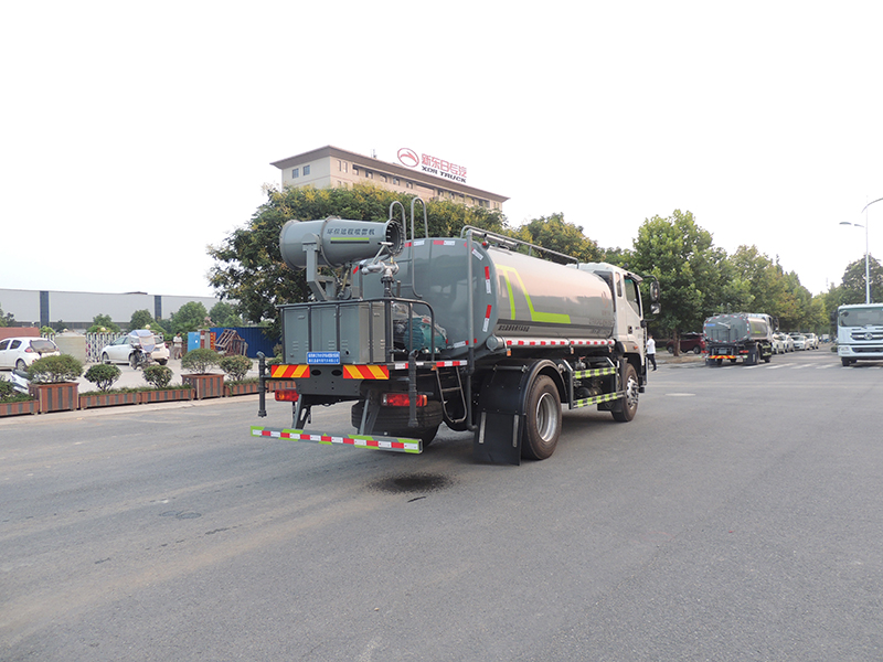 標準配置灑水車主要裝備有:前沖(沖洗公路路面)、后灑(公路路面養護)、側噴、高位側花灑(路邊綠化帶優化);后工作平臺高壓水炮,可調節成柱狀,射程≥28m;也可調節成霧狀,射程≥30米,水泵自吸高度:≤7m,灑水寬度:≥15m。側防護網,自流閥,消防接頭。灑水車水泵為常壓水泵,功能可以抽水、排水。另外根據用戶要求,可加消防泵、噴霧機、農藥卷盤、農藥柱塞泵。罐內可以做防腐防銹、電磁閥氣動閥自動放水等****,以滿足不同用戶需求。