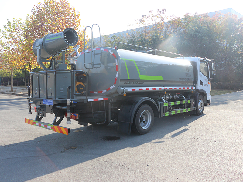 標準配置灑水車主要裝備有:前沖(沖洗公路路面)、后灑(公路路面養護)、側噴、高位側花灑(路邊綠化帶優化);后工作平臺高壓水炮,可調節成柱狀,射程≥28m;也可調節成霧狀,射程≥30米,水泵自吸高度:≤7m,灑水寬度:≥15m。側防護網,自流閥,消防接頭。灑水車水泵為常壓水泵,功能可以抽水、排水。另外根據用戶要求,可加消防泵、噴霧機、農藥卷盤、農藥柱塞泵。罐內可以做防腐防銹、電磁閥氣動閥自動放水等****,以滿足不同用戶需求。