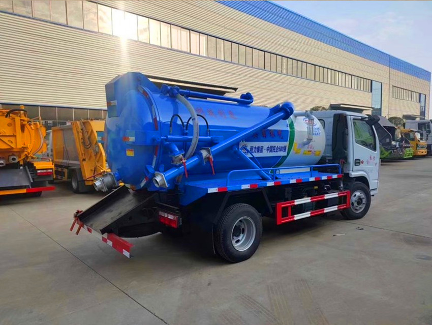 東風5噸吸污車該車裝有取力器,真空泵,高壓水泵等;罐體總長(mm):3600,其中水罐前下部用于安裝高壓泵,水罐罐體有效容積:1.92立方米,罐體外形尺寸(長×直徑)(mm):1800×1200;吸污罐罐體有效容積:1.92立方米,罐體外形尺寸(長×直徑)(mm):1800×1200;水罐和吸污罐為兩個獨立罐體,兩罐不能同時滿載;防護材料:Q235A碳鋼,連接方式:左右側面防護以及后部防護采用焊接連接,后防護斷面尺寸(mm):100×50,后部防護離地高度(mm):350;整車長/軸距/后懸對應關系為(mm):5995/3308/1632,5915/2950/1910,5510/2700/1755; 隨底盤選裝駕駛室,ABS型號/廠家:ABS/ASR-12V-4S/4M/襄陽東風隆誠機械有限責任公司,選裝清洗罐體和吸污罐體功能高度集成的圖片,擴展左右側以及后部樣式。