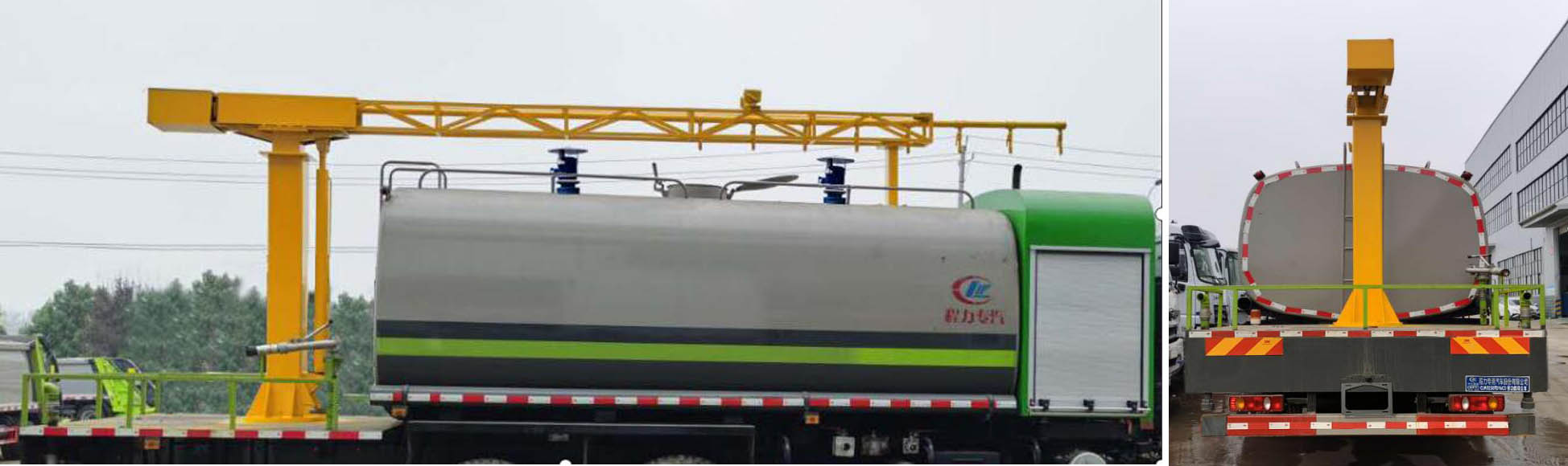 該車專用裝置為抑塵霧炮,主要用于城市抑塵;整車長/軸距的對應關系為(mm):10180/4400+1350,11280/5500+1350;防護材料:左右側面采用焊接連接,材質為Q235A碳鋼,后下部防護采用螺栓連接,后部防護斷面尺寸(mm):150×50,后部防護離地高度(mm):480.ABS控制器型號/生產企業:44600XXXX0/威伯科汽車控制系統(中國)有限公司,3550X-1010/東科克諾爾商用車制動系統(十堰)有限公司,CM4XL-4S/4M/廣州瑞立科密汽車電子股份有限公司;選裝后部噴桿抑塵裝置. |