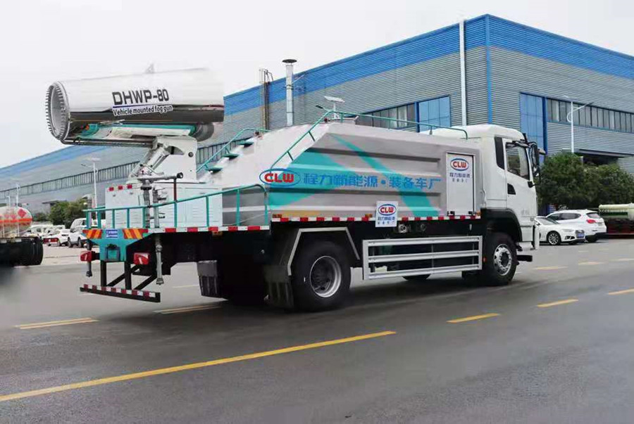 比亞迪T8純電動10噸抑塵車-霧炮車整車性能:側(cè)掛式磷酸鐵鋰蓄電池機箱,質(zhì)保五年;駕駛室一鍵操作控制系統(tǒng);罐體碳鋼材質(zhì)或不銹鋼材質(zhì);后平臺加裝80米全自動霧炮機組,霧化降塵作用。