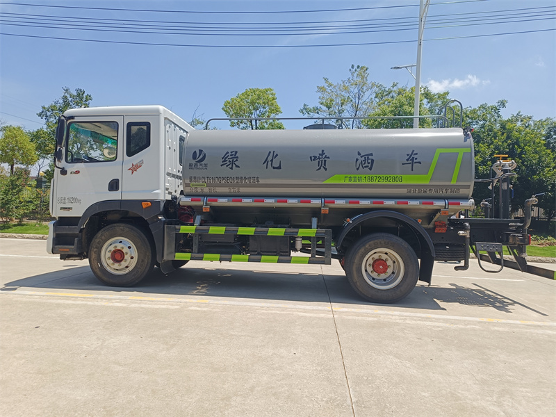 灑水車產品簡述:縱昂牌 CLT5167GPSEQ6 型綠化噴灑車標配前噴(鴨嘴)、后對沖、 后灑、側噴、后置式工作平臺,平臺上配置綠化水炮可 360°旋轉,既可以調 成柱狀,也可以調成霧狀,配備優質大功率專用灑水泵,可自吸自排,可從河 里或池塘抽水到罐體,取力器,雜物過濾網,消防接口,自流球閥系統、取力 器、球閥、濾網均為國家標準產品,主管道加粗,法蘭墊、法蘭盤加厚,大通徑 球閥。整體具備性能優良安全可靠、效率高、流量大、維修方便等特點